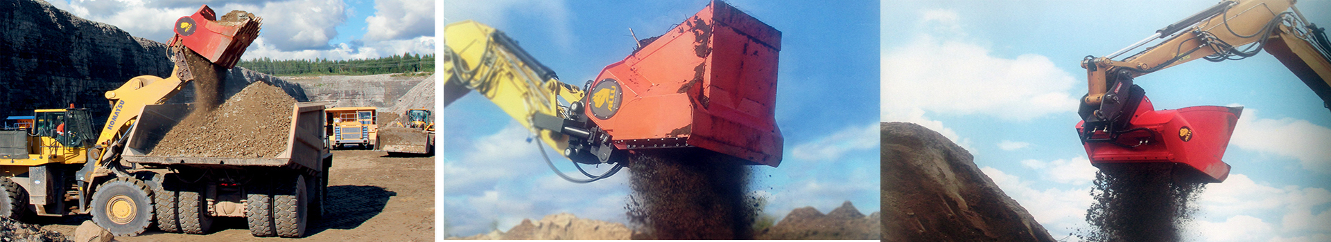 壤破碎篩分設(shè)備主要包括主機(jī)、動臂及鏟斗,該動臂一端與所述主機(jī)相配合,動臂的另一端與所述鏟斗相配合;所述鏟斗包括鏟斗本體、設(shè)于鏟斗底面的篩濾口、第一篩濾件、第二篩濾件及用于驅(qū)動第一篩濾件和第二篩濾件發(fā)生振動的振動件;所述振動件與所述第一篩濾件之間設(shè)有第一彈性傳動件,振動件與第二篩濾件之間設(shè)有第二彈性傳動件。本發(fā)明通過在鏟斗上設(shè)置第一篩濾件和第二篩濾件,可直接在鏟斗挖泥后繼續(xù)篩濾操作,無需單獨(dú)設(shè)置用于篩濾的設(shè)備,減小修復(fù)工程的成本投入;且直接省去了人力對泥土進(jìn)行搬運(yùn)的操作,提高了工作效率,降低了勞動力的投入。