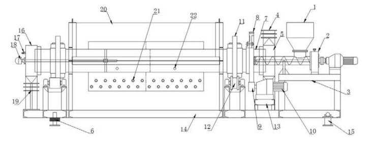 土壤熱解析設備通過螺旋給料機將待修復土壤運送至電加熱爐內,電加熱爐對滾筒進行加熱,滾筒內部的熱量傳遞至待修復土壤并對待修復土壤進行熱解析處理產生廢氣和凈化后的土壤,滾筒被加熱的同時驅動裝置帶動滾筒轉動,由于采用電加熱爐進行加熱,電加熱爐的最高加熱溫度可達到1000℃,而當加熱溫度在700-800℃時,滾筒內部的溫度可達600-700℃,而一般有機污染物的沸點在120~530℃之間,因此,采用本發明所提供的土壤熱解析設備基本可處理所有的一般有機物。